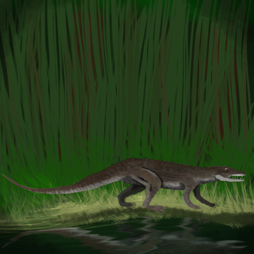 Good work!The Erpetosuchus was bipedal while sprinting (Ran on two limbs). This allowed them to run faster and hunt prey in the wild. However, they didn't resemble modern crocodiles in behaviour or body shape which showed how evolution can roll back, given the circumstances.